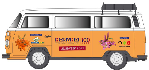 In vijf dagen tijd zal het Hobaho lelieteam en het promoteam de diverse regio’s in Nederland aan doen en bij vele lelie klanten en relaties langsgaan met de promotie bus. Op deze bus staan twee ‘highlights’ van de veredelaars in de schijnwerpers. Voor Royal van Zanten is dit de mooie lange rijkbloeiende roze OT met de naam “Master” en voor De Jong Lelies is dit de warm oranje dubbelbloemige Aziaat met de naam “Scoubidou”.